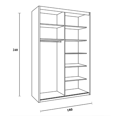 מערכת גלגלים איכותיים המקנה החלקה שקטה של דלתות הארון כולל פרופילים ומסילות מאלומיניום איכותי. מנגנון טריקה שקטה גם לדלתות וגם למגירות הפנימיות. מדפים בגימור מעולה.