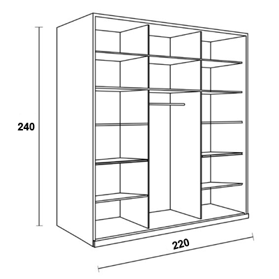 מידות: רוחב: 220 ס"מ, גובה: 240 ס"מ, עומק 61 ס"מ